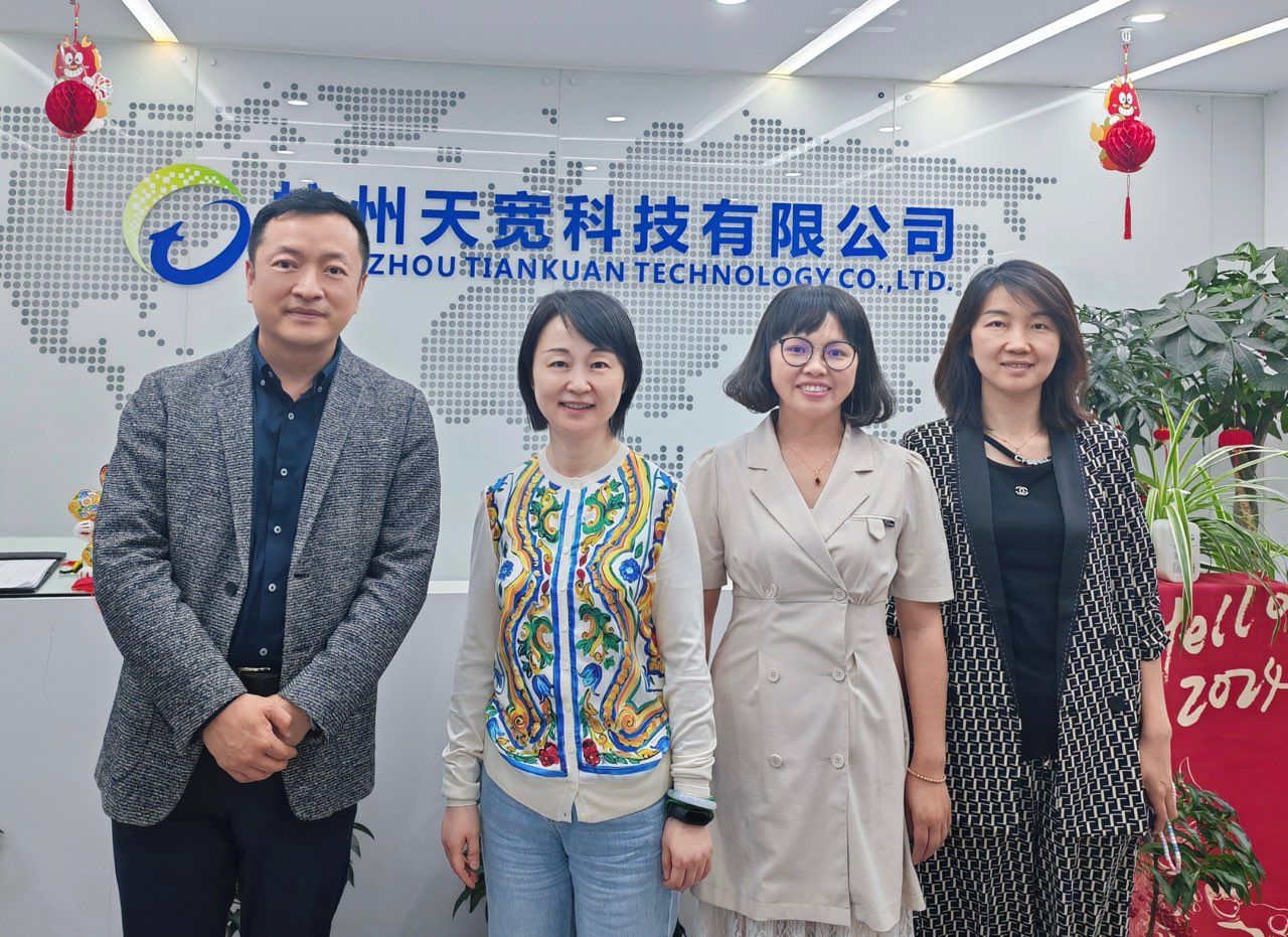 座谈会上(shàng),张元元代表公司对何芳一(yī)行(xíng)的到来表示欢迎。他(tā)简要(yào)介绍了(le)公司的业务发展模式以及未来商业拓展的规划思路。何芳对天宽的实力和(hé)未来发展潜力给予了(le)充分的认可(kě)。她表示,天宽的行(xíng)业发展方向与电子科技大学的研究方向高度契合,双方未来有着较广泛的合作(zuò)空間(jiān)。随后,双方就人(rén)才培养、技術(shù)创新、就业创业等方面的合作(zuò)模式进行(xíng)了(le)深入探讨,期待利用双方资源和(hé)优势開(kāi)展校企深度合作(zuò),协同育人(rén)育才,产教融合提升新质生产力。