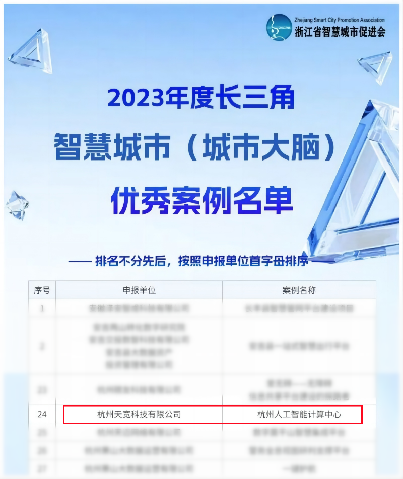 上(shàng)榜!公司承建运营项目“杭州人(rén)工(gōng)智能(néng)计算中心”入选2023年(nián)度長(cháng)三角智慧城市(城市大脑)优秀案例