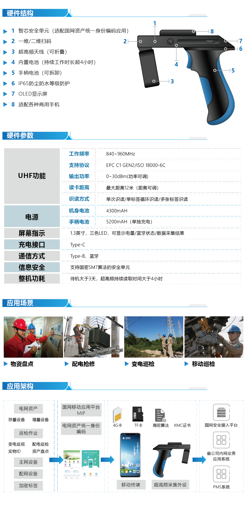 电力运检背夹——TP11超高頻(pín)采集器是一(yī)款智能(néng)化采集终端设备,具备一(yī)维/二维条码、超高頻(pín)RFID數(shù)据采集功能(néng)。产品形态灵活可(kě)变,识别距离灵活可(kě)调,操作(zuò)舒适、续航持久。同時(shí),支持多业务、多场景应用,完全能(néng)够满足行(xíng)业客户对业务场景的需求。