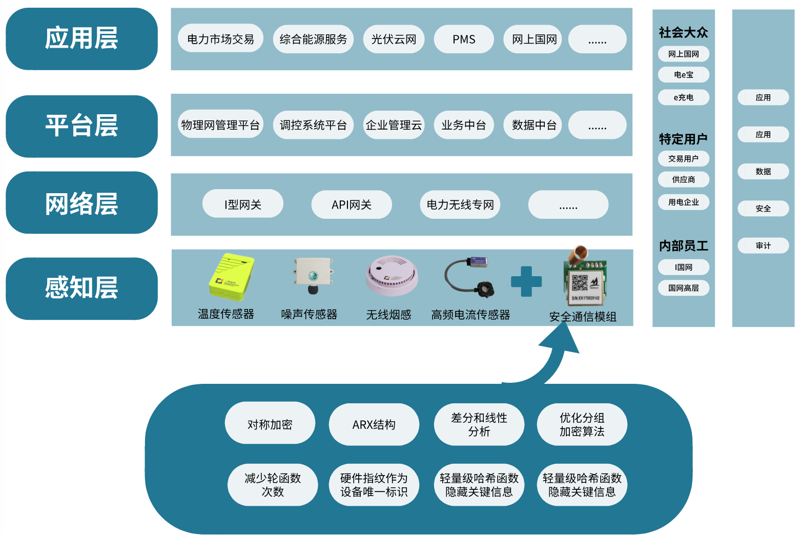 无线传感网络轻量级安全解决方案针对输变电设备物(wù)联网等电力物(wù)联网感知层网络特征及安全需求,提出适用于电力无线传感网络的新型轻量级分组加密算法和(hé)轻量级身份认证方案,解决计算/存储/带宽资源及功耗受限的电力无线传感网络安全防护难题,保证终端和(hé)通(tōng)信的安全性,提高无线传感网络的安全防护能(néng)力。